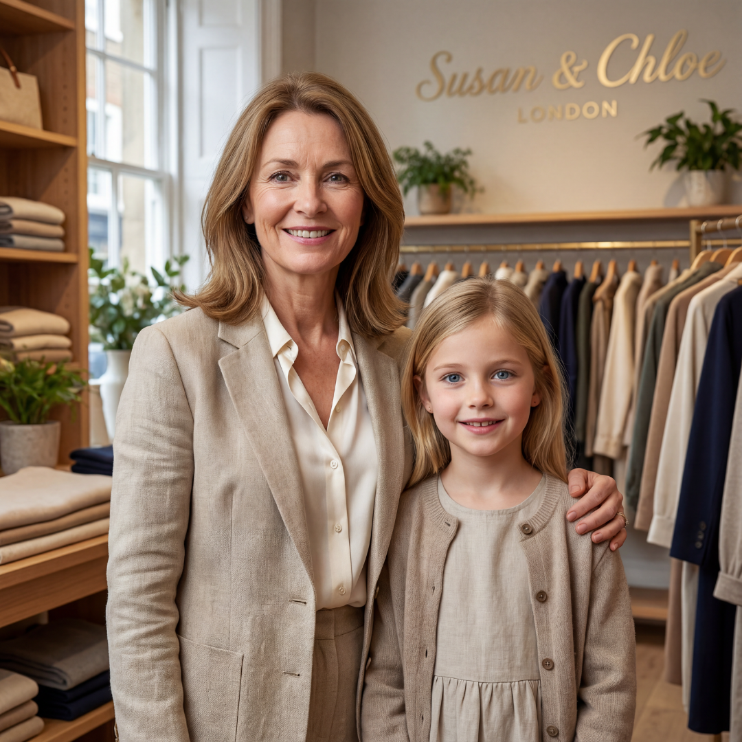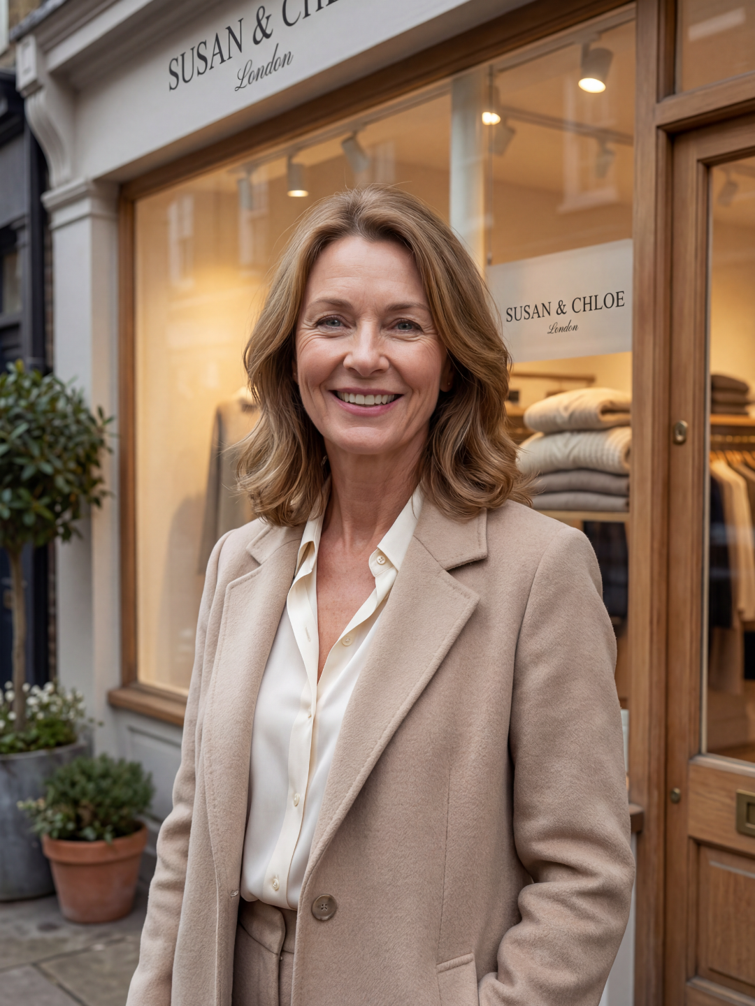 Susan & Chloe London was born from Susan’s lifelong passion for fashion, craftsmanship, and helping women feel their best. After years in London’s boutique studios, she created a warm, personal boutique built on quality, timeless design, and thoughtful service.